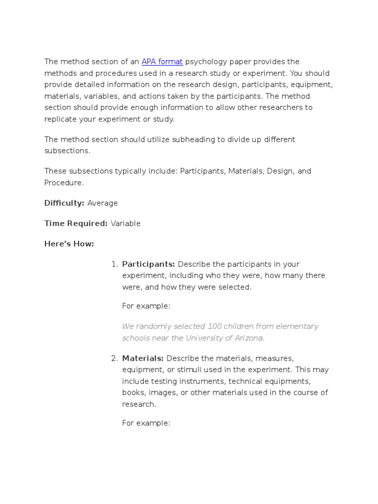 Market Research Methods Business Essay Example from paperap.com An example of a poorly written method section from a biology report. This article tells you, with examples, what you should include in the introduction and what you should leave compared to two other sections of a typical research paper, namely methods and results. Any questions and thanked for their cooperation. Read research paper, term paper and essay samples written by our professional writers and feel free to use them as a source of inspiration and ideas for your own academic work. For example, did you use an observational method when you conducted your research? That they may cease participation at any time. A mixed methods analysis of students' social justice value orientation in an undergraduate community psychology. Adapted from 'i am a change agent':